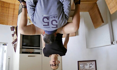Kneeing him repeatedly in the Dick! Point Of View FemDom Nylon & Toilet Seat Cock & Ball Busting by MATURE Mother Mistress Thursday