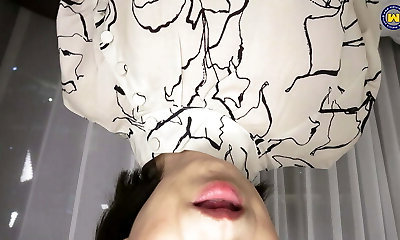 While the Desi stepmother washes bra & panties, stepmom took off the stepson's pants and Nude him, Then asks him to pulverize her - Cum