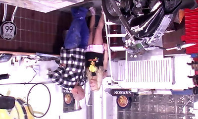 German blonde milf stashes with her lover in the garage to enjoy like crazy while humping in a German amateur