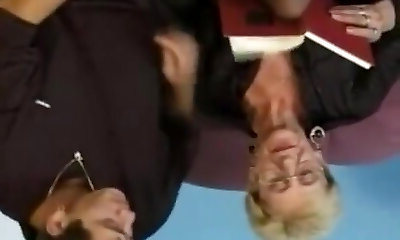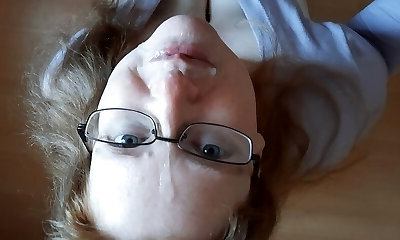 Mature MILF with Glasses Sucking Cock until Cum in Throat - Amateur Hot MILF Wife Oral Pleasure POV