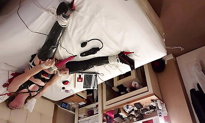 Self Bondage, Sensory Deprivation And Doxy Magic Wand Corset - Cute Girl In Rubber Latex Catsuit