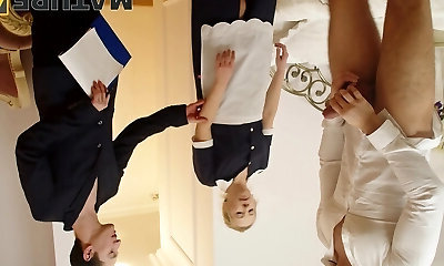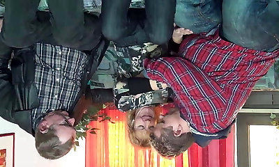 German blonde granny filmed in pov sucking and pulverizing two cocks of two eager friends humping her wet pussy