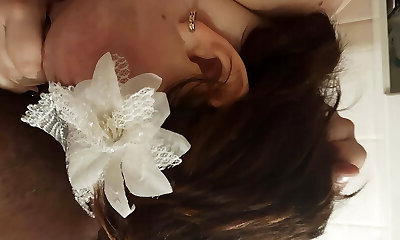 Curvy short-haired slut is so hungry for a cock, she sucks me in the shower, swallows all the spunk