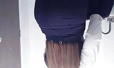 Curvy Milf in a nurse's uniform behind the scenes. Gorgeous juicy ass, big tits, shaved cooch at a photo shoot. Medical fetish.