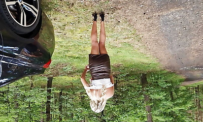 plump hotwife outdoors doggystyle lifted her skirt and pissed with her holes wide apart