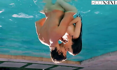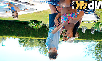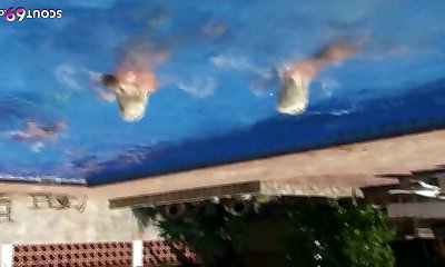 Sexy Fit Busty Cougar Seduces a Horny Teen In the Pool To Get His Hard Boner In Her Smooth-shaven Cunt