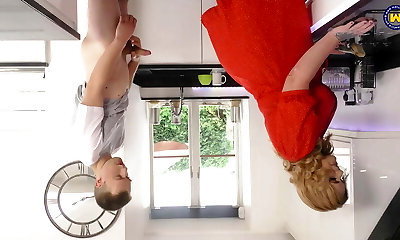 What do you want for breakfast: me or scrambled eggs? Curvaceous wife in nylon pantyhose. Huge-chested milf with big caboose behind the scenes.
