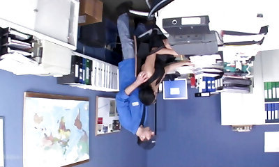 A beautiful mature brunette likes to nail with a immense dicked client on her desk at the office